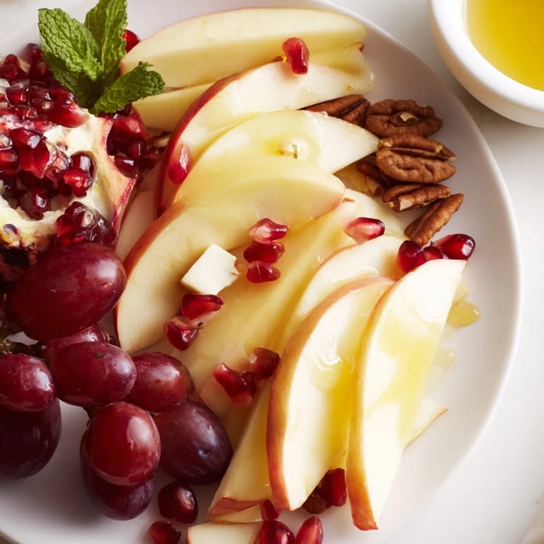 Save A vibrant, seasonal fruit platter inspired by the flavors of a traditional apple orchard, featuring fresh apples, complementary fruits, and a touch of honey for dipping—a perfect centerpiece for snacking or entertaining.