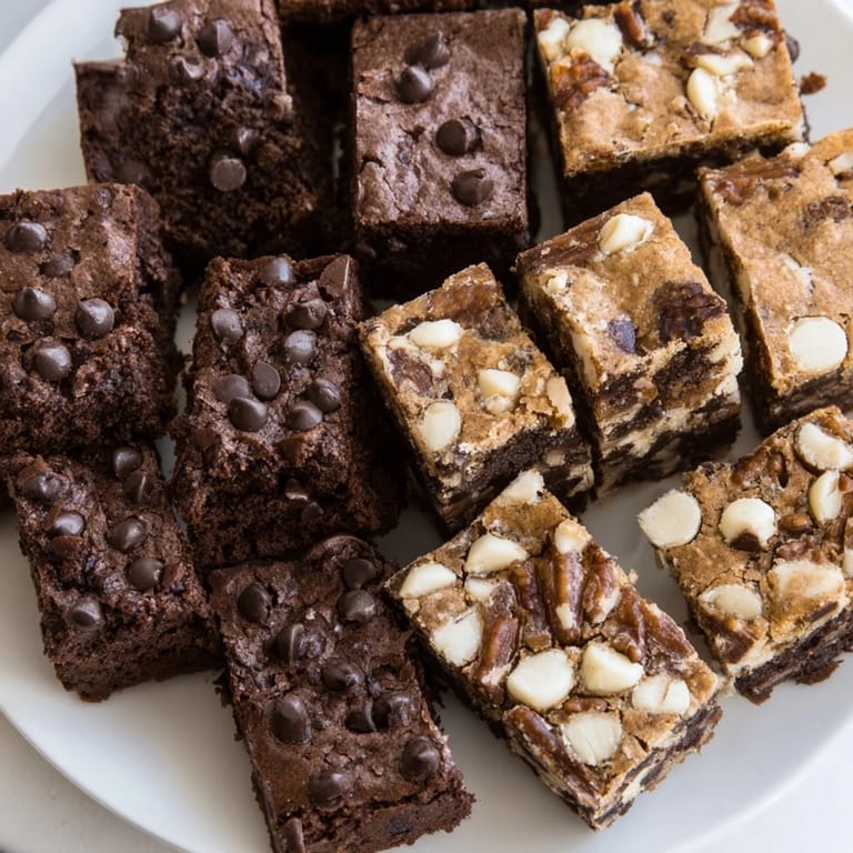Save A decadent assortment of rich chocolate brownies and buttery blondies, perfect for sharing at gatherings or as a sweet treat for any occasion.