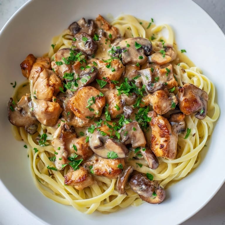 Save I wasn't planning to cook anything fancy that Tuesday evening, but halfway through my shift I caught myself daydreaming about cream sauce and mushrooms. There's something about the smell of butter hitting a hot pan that brings back kitchen moments you didn't know you were missing. That night, I made this creamy mushroom chicken pasta almost on autopilot, the kind of meal that doesn't require your full attention but somehow turns out better that way. My roommate walked in mid-cook and asked what smelled so good, and I realized I'd been humming without noticing. Twenty-five minutes later, we were twirling pasta on forks and not talking much, which says everything.