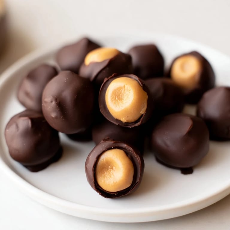Save A classic holiday confection featuring creamy peanut butter centers partially dipped in rich chocolate, resembling the nut of the Ohio buckeye tree.
