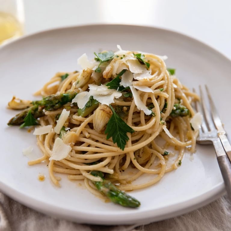 Save The smell of roasting garlic always reminds me of my tiny first apartment where the oven was practically in the living room. I'd roast a head of garlic just to make the whole place smell welcoming, even when I wasn't sure what to cook for dinner. This pasta dish came together one spring when asparagus was everywhere and I wanted something that felt fancy but wasn't complicated.