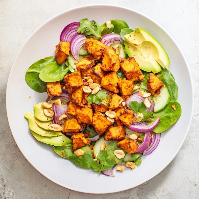 I made this salad on a warm afternoon when I craved something hearty yet fresh. Roasting the sweet potatoes filled the kitchen with a comforting aroma and the peanut dressing instantly perked up each bite.