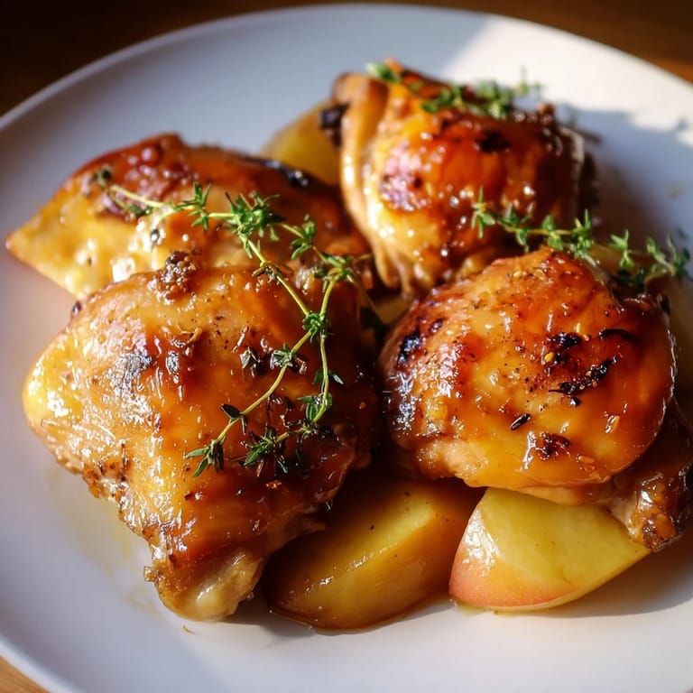 Save There's something almost magical about the moment when maple syrup hits a hot pan and the smell starts filling your kitchen—sweet, tangy, with this underlying richness that makes you pause whatever else you're doing. The first time I made sticky maple apple chicken was a quiet Tuesday night when I had good chicken thighs on hand and a bottle of apple cider I'd been saving. I whisked together maple syrup, apple cider vinegar, and Dijon mustard almost on instinct, and it turned into this glossy, burnished glaze that clung to golden-brown skin like it was meant to be there. That one dish became my go-to whenever I needed something that felt special but didn't demand hours in the kitchen.