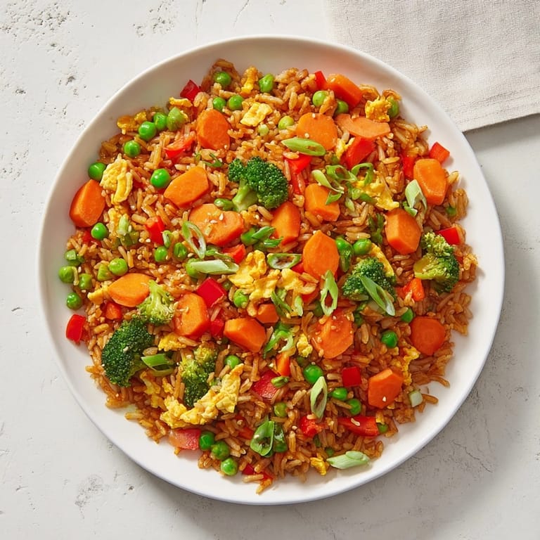 I love making this fried rice on busy weeknights because it comes together quickly and always impresses my family. The colorful veggies make the dish visually appealing and delicious every time.